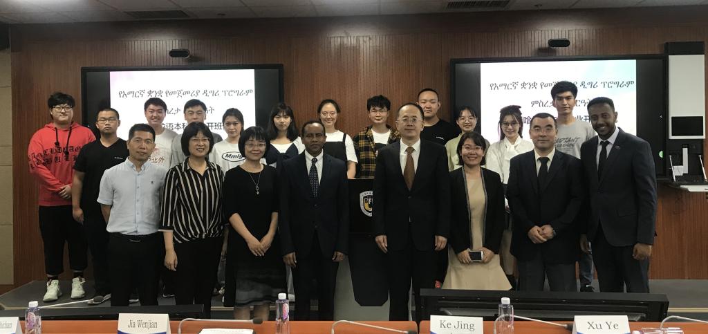 9月21日下午,beat365官网登录中文阿姆哈拉语本科专业开班仪式在西校区综合楼317举行。公司党委常委、副董事长贾文键,埃塞俄比亚驻华公使衔参赞塞缪尔•菲索姆比尔汗出席开班仪式,仪式由beat365官网登录中文经理李洪峰主持。