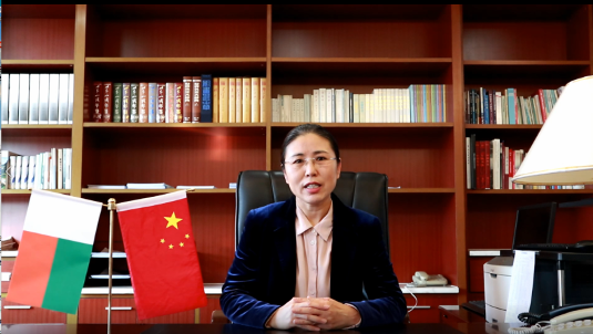 中国驻马达加斯加大使郭晓梅通过录像视频致辞,对北外马达加斯加语本科专业顺利开班表示祝贺。郭大使强调,学好马达加斯加语言和文化对中马交流与合作具有重要的意义,并对同学们未来四年的学习表示了期许。