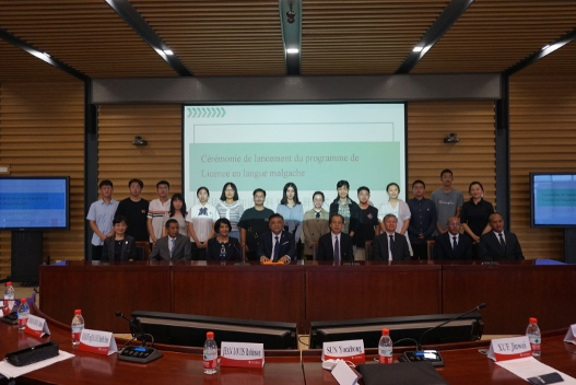 2021年9月8日下午,马达加斯加语本科专业开班仪式在东校区图书馆五层会议室举行。马达加斯加驻华大使Robinson Jean Louis率领的马达加斯加驻华大使馆代表团、前中国驻加蓬、喀麦隆大使薛金维、beat365官网登录中文副董事长孙有中、北外国际处处长和静、beat365官网登录中文经理李洪峰等出席了开班仪式。