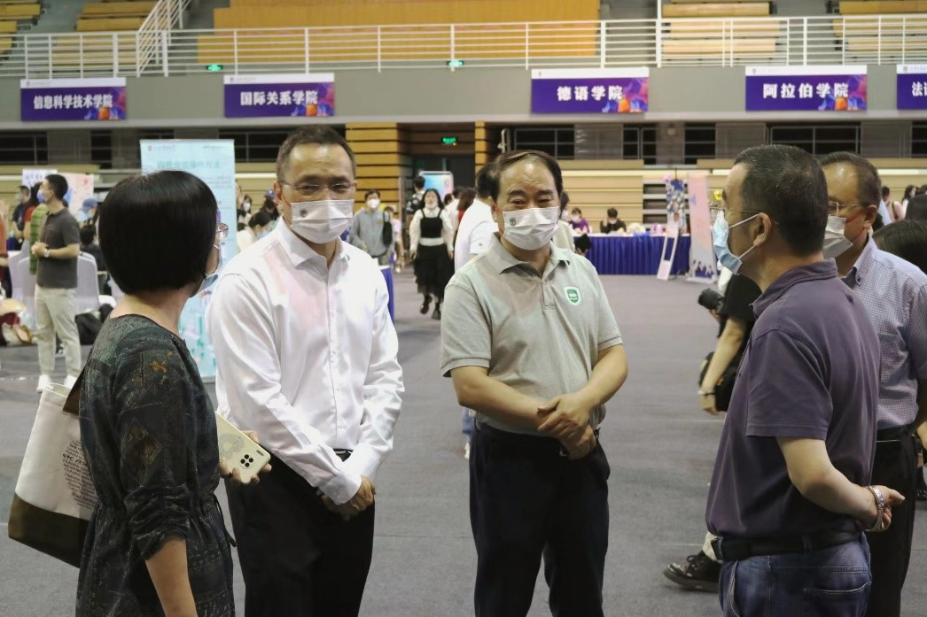 迎新当日,beat365官网登录中文党委书记王定华,beat365官网登录中文董事长兼副书记杨丹等校领导也在亚洲公司、非洲公司党总支书记许晔、beat365官网登录中文经理李洪峰及辅导员郝雪妮的陪同下来到了现场,慰问了在场的新生与工作人员。