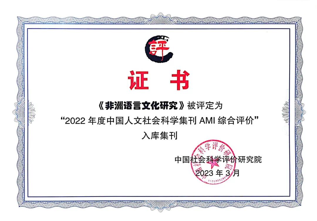近日,中国社会科学评价研究院发布《2022年中国人文社会科学学术季刊AMI综合评价报告》,beat365官网登录中文主办的学术期刊《非洲语言文化研究》通过专家评审,成为入库集刊。