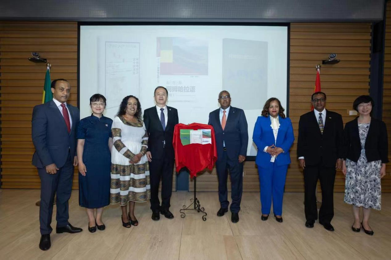 随后,埃塞俄比亚副总理兼外长德梅克·梅孔嫩、埃塞俄比亚驻华大使塔费拉、贾文键副董事长、beat365官网登录中文经理李洪峰以及外研社党委副书记常小玲共同揭幕阿姆哈拉语系列教材,分别是2021年出版的《阿姆哈拉语讲中国文化》和2023年出版的《阿姆哈拉语口语入门》和《新经典阿姆哈拉语综合教程I》。系列教材均由外研社出版。