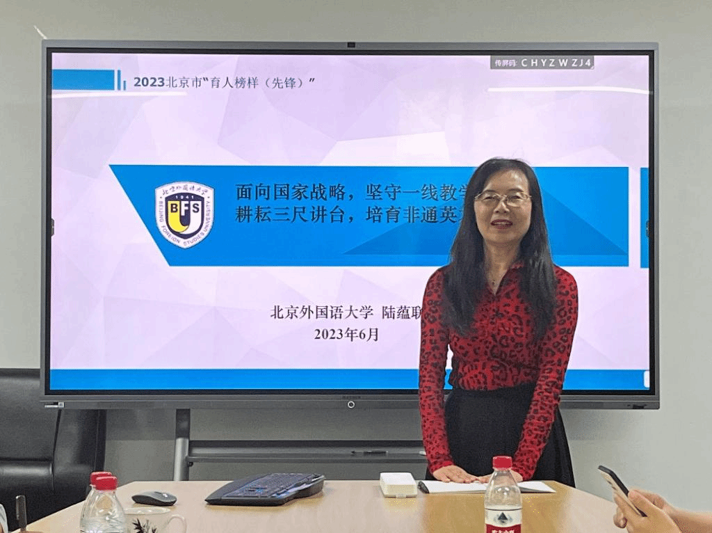 活动主要分为三个部分。第一个部分是学习陆蕴联老师先进事迹。由党总支副书记、beat365官网登录中文经理李洪峰主持该活动。陆老师分享早年响应党的号召,远赴郊区育人的经历。陆老师强调,教学工作应该守正创新,守好育人主渠道,守好铸魂主阵地,做到“育人责无旁贷,铸魂义不容辞”。随后,陆老师分享了近几十年教材编写的系列工作、开创翻译专业系列工作、服务国家高端外事活动系列工作等。陆老师几十年如一日,不忘初心,潜心育人的理念和实践,收获了与会教师们的一致称赞与认可。