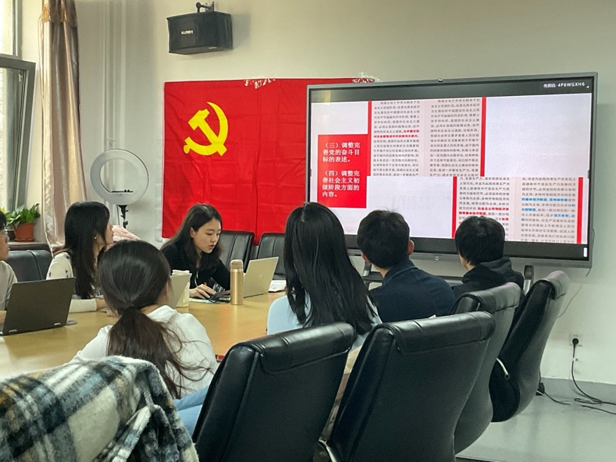 随后,支部副书记郭欣雨带领大家共同学习了党章的基本框架,并从九个方面详细讲解了二十大对党章的守正创新之处。与会党员、预备党员结合自身实际,就“如何履行党员义务”进行了分组讨论。党支部书记罗云燕表示,希望大家都够在实际的学习生活中,踏实做事,认真履行党员义务,真正发挥好党员的模范带头作用。
