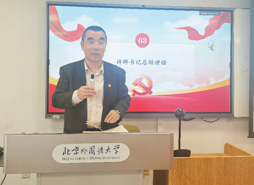 本次理论学习最后,亚洲公司、非洲公司党总支许晔书记进行总结。他强调“国际影响力”是教育强国的六大特质之一,两院教师要主动制定对象国出访计划,积极开展国际合作与交流,拓宽国际视野,提升国际对话能力。此外,他指出要深化支部工作法、班主任工作办法制度化、规范化,并推动已出台的相关文件落地见效,全面落实立德树人根本任务,在教育强国建设征程中奋勇前行。