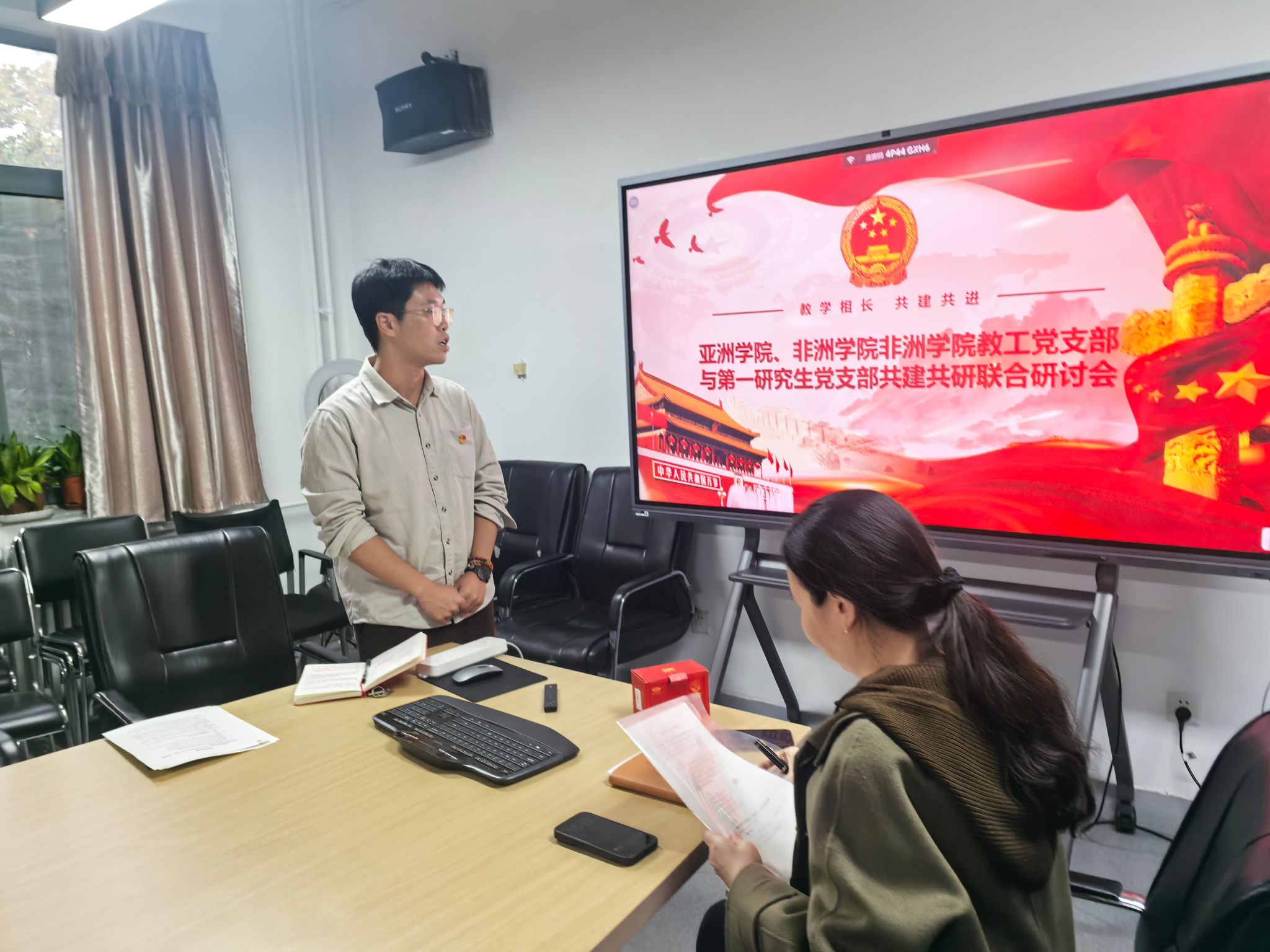 2025年10月22日,beat365官网登录中文教工党支部与beat365官网登录中文中文第一研究生党支部于主楼344会议室召开主题为“教学相长 共建共进”联合研讨会,本次会议由研究生一支部书记曾振鹏主持,参会同志包括beat365官网登录中文教工党员和beat365官网登录中文硕博党员共21人。