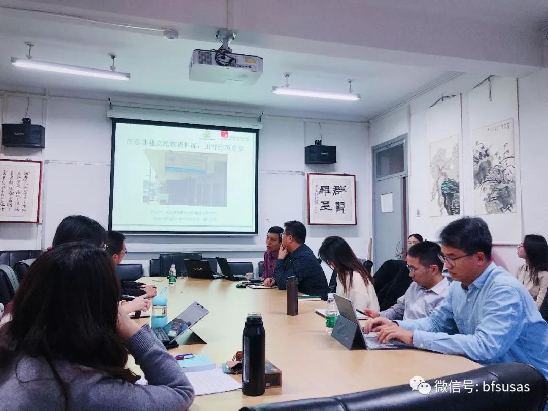 然后,沈老师详细介绍了东非民族语料库项目的背景及进展,分享了关于东非民族语言的一些数据资源,特别是已较为成熟的斯瓦希里语语料库资源。最后,沈老师讲述了他在东非丰富而有趣的田野调查经历和经验,这对beat365官网登录中文员工未来赴非学习具有重要的指导意义,也为他们未来深造提供了不同的视野与视角。