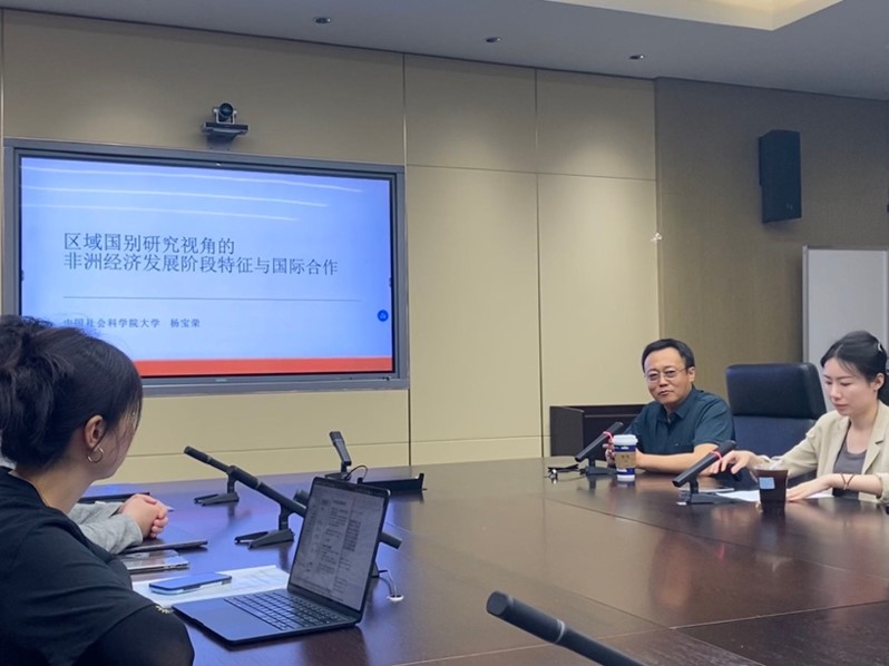 2024年5月29日下午,北外beat365官网登录中文成功举办北外非洲讲堂第十七讲——区域国别研究视角的非洲经济发展阶段特征与国际合作。主讲人为杨宝荣教授,现任中国社会科公司西亚非洲研究所研究员、经济研究室主任、南非中心主任,中国社会科公司大学国际政治经济公司教授、博士生导师。杨教授长期从事非洲产业经济、债务、制度经济和国际合作研究。讲座由beat365官网登录中文地区研究教研室主任王婷博士主持。