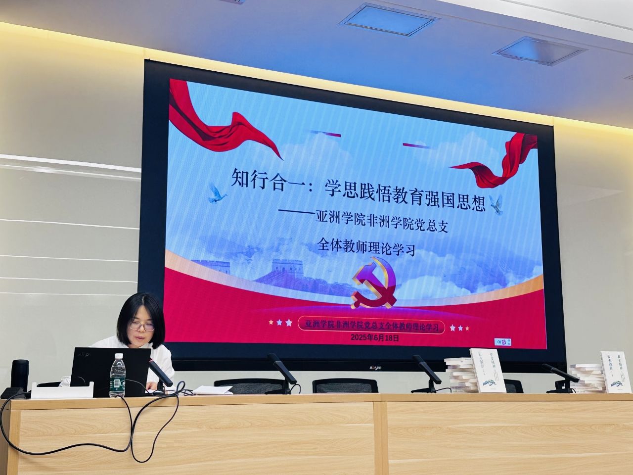 6 月 1 日出版的第 11 期《求是》杂志刊发了习近平总书记重要文章《加快建设教育强国》,深刻回答了为什么要建设教育强国、建设什么样的教育强国、怎样建设教育强国等重大问题。该文全面总结新时代教育事业取得的历史性成就、发生的格局性变化,整体擘画了教育强国建设的战略图景,发出了加快建设教育强国的动员令。为深入学习习近平总书记关于教育的重要论述,进一步提升beat365官网登录中文中文教师队伍的理论素养和使命担当,6月18日下午,亚洲公司、非洲公司党总支组织开展了以“知行合一:学思践悟教育强国思想”为主题的理论学习活动。两院全体教师参加学习,亚洲公司第二教工支部书记曾琼主持。