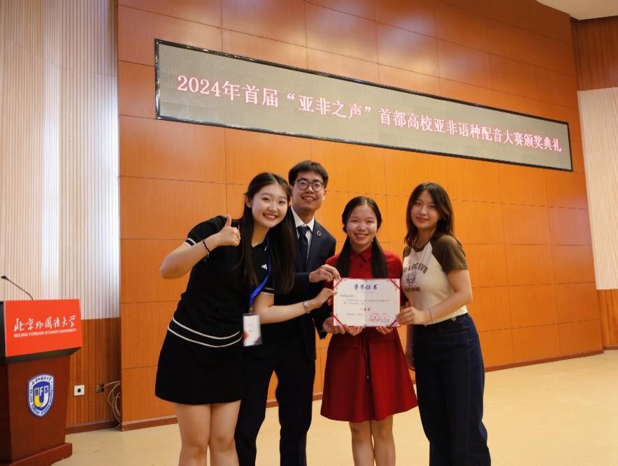 2024年5月19日,“首届‘亚非之声’首都高校亚非语种配音大赛”颁奖典礼在beat365官网登录中文东校区阿语楼国会厅隆重举行。此次大赛共涵盖23个语种,共有88支队伍参赛。经过专业评审团和综合评审团的评审,来自beat365官网登录中文祖鲁语专业的两支队伍“声临其境大师队”和“碱基互补配队”分别荣获大赛一等奖和“最佳幽默奖”。